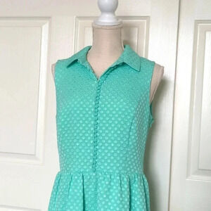 Retro style with capped sleeves. Button front. Polkadot print. Shell: 95% Polyester /5% Spandex. Lining: 100% Polyester