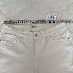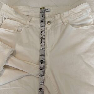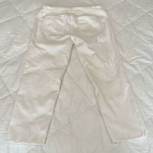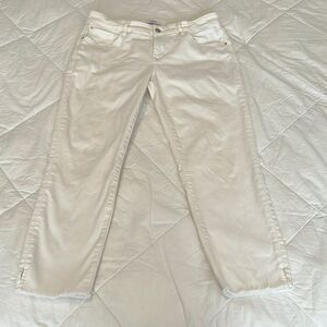 Kensie sz 10/30 off white denim crop pants raw hem with slits at side hem EUC