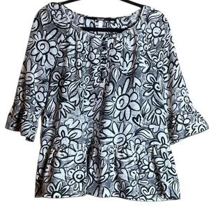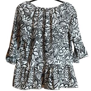 Chic blouse with bold floral design. Features 3/4 sleeves and a relaxed fit. Ideal for versatile styling.