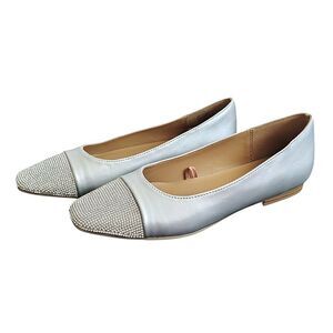 Kensie Faith Silver Rhinestone Studded Square Closed Toe Flats Size 8 NWOT