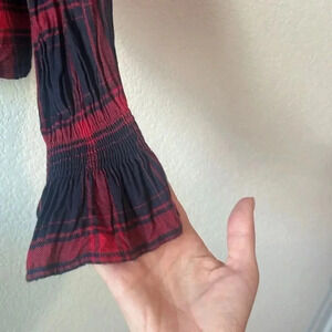 Bell sleeves and ruffle accents. Plaid shirt from Kensie jeans. Size medium. Soft flannel like feel. Pit to pit is 19 inches and top of should to bottom of top is 21 inches. Sleeve is 25 inches long.