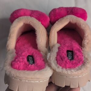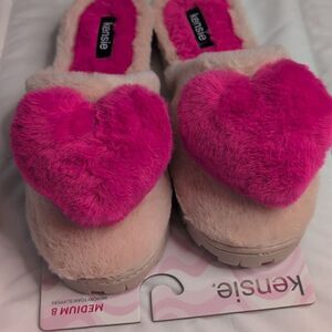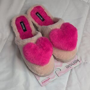 Kensie Memory Foam Slippers Puffy Pink Heart Slip On, NEW, Multiple Sizes