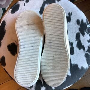 Multi textile/leather upper sneakers in a darling blend of taupe pink, black, white, and animal print. Size 8. Great condition with two tiny scuffs to toe. Fun kicks!