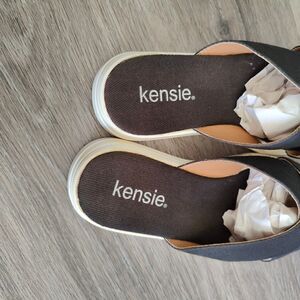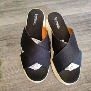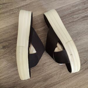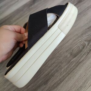Slip On Sandal, Fabric Upper, Rubber platform and sole, Faux leather lining and round toe,
