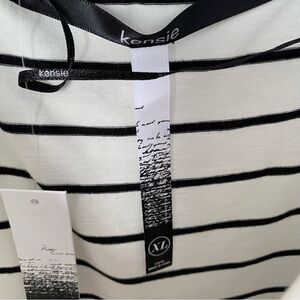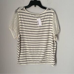 Kensie Women’s Crew Neck Striped Short Lace Mesh Sleeve Teeshirt size XL