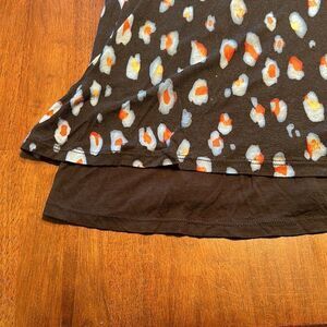 Great condition address, material tag removed. This dress has a stretchy comfortable T-shirt feel to it. This dress measures 17 inches pit to pit and is 15 inches across the waist. The total length of the dress measures approximately 37 inches. Has a black Liner skirt underneath that peaks out of the bottom