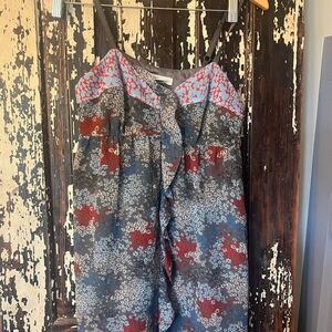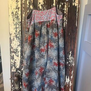 Stylish floral dress with ruffle details. Features a mix of red and gray colors. Delicately washed. From smoke free home. Bundle and save. Check out my other beautiful dresses for any occasion.