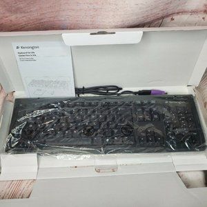 Explore the reliability of the Kensington black spill-proof standard keyboard, designed to withstand spills and built for long-lasting performance. With a USB/PS2 connection, this keyboard ensures compatibility and durability, offering a seamless typing experience. Invest in a keyboard built for life and engineered for resilience.