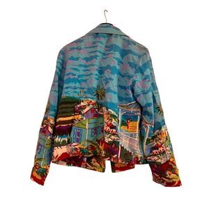 Kensington Lane Women's Multicolor Tropical Camo Long Sleeve Silk Top Small
