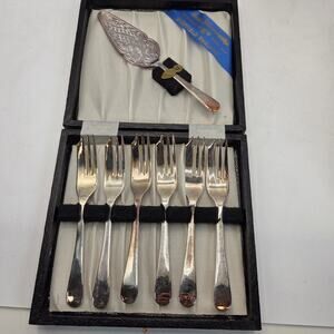 Kent Silversmiths Sheffield Silver Plated Forks & Server Set in Box England