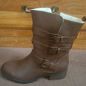 NWO box Brown boot with partial cozy fabric faux leather zipper and side buckles