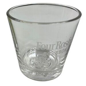 1. Four Roses Bourbon Etched Collectible Whiskey Glass Embossed Bottom 6 Oz Barware. Approximate measurements: 3.12" Tall, 3.12" Top Opening (including the rim), 2.25" Across the Bottom.