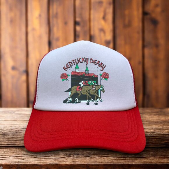 Kentucky Derby Mens Trucker Hat Red Snapback Horse Race Thoroughbred Ball Cap