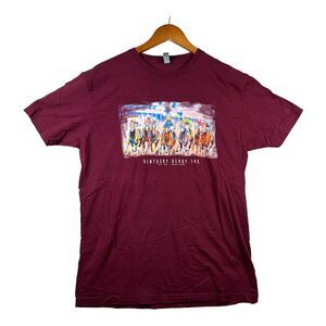 Kentucky Derby The Run for the Roses Downs 148 Red Race Horse Racing Shirt L