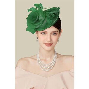 Kentucky Fascinator Derby Pillbox Hat Mesh Feathers Green