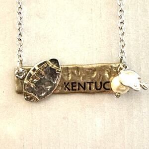 Kentucky gold and silver football bar necklace with pearl & helmet charms