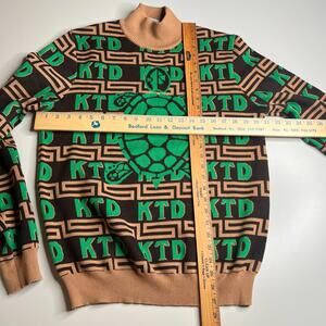 Color/Pattern: Black and tan knit with all-over green turtle and KTD logo graphic