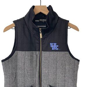 Kentucky Wildcats Vest Womens S Full Zip Black Gray Quilted Herringbone Preppy