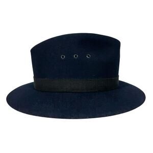 Kenwood Men’s Vintage Hat 100% Wool Fedora Navy Blue with Band Lined Size 7. Preowned. Area of wear on bottom of Brim (see photo 7). Comes from smoke Dr home. Ships out fast!