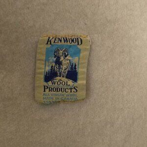 Kenwood Wool Products Virgin Wool Blanket Made in Canada - Beige w Rd Blue Strips AE