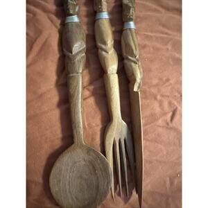 Bring authentic vintage African charm to your home with this exquisite hand-carved utensil set.