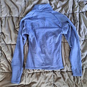 Blue quarter zip pullover. 56% Polyester, 34% Nylon, 10% Spandex. Great condition. Inside is fleece