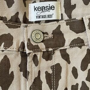 Kenzie Animal Print Mini Skirt Size 10 Stretch Denim Brown & Tan