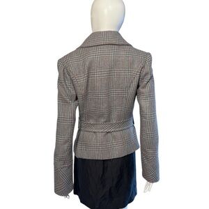 This Kenzie blazer in a sophisticated gray hue features a timeless tailored design with structured shoulders and notched lapels. Its fitted silhouette and classic styling make it an ideal choice for professional settings, offering a polished and elegant look.