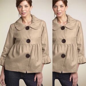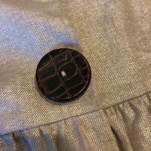 Metallic cropped 3/4 sleeve ruffle bottom and collar big wooden buttons snap closure loose fit
