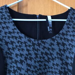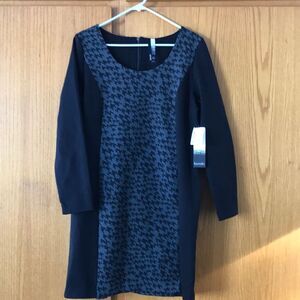 New with tags. Size XL. Nonsmoking home. kensie™ Scattered Houndstooth dress. On-trend houndstooth print at center with solid detail at sides. Scoop neckline. Long-sleeve construction. Exposed zipper closure at back. Straight hemline hits at a flirtatious mid-thigh length. 67% cotton, 28% polyester, 5% spandex. Machine wash cold, tumble dry low. First pictures are stock photos.