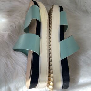 Kenzie mint green platform straps slip on sandals size 9 pre owned In good used condition normal wear size is missing see all pictures any questions please message.