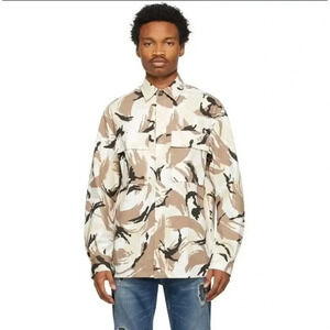 Kenzo $440 Beige Tropic Camo Over Jacket Shirt Ripstop Fabric Men's Small