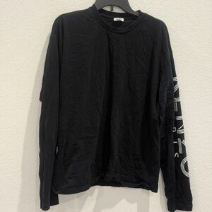 This Kenzo long sleeve tee in black features striking white graphics down one sleeve, adding a unique touch to its casual streetwear style. Made from a comfortable cotton-based fabric, it offers a relaxed fit perfect for everyday wear.