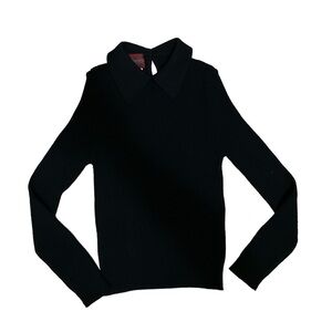 Kenzo / Black Wool Peter Pan collar Ribbed fitted Sweater medium M