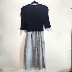 Kenzo Cotton Crew Neck Dress With A Ribbed Knit Top And Poplin Striped Buttoned Skirt