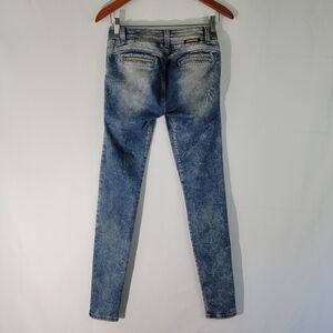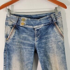 Kenzo GOLD DENIM VANY Skinny Mid-Rise Jeans Sz 6 Designer Beaded Gold Button