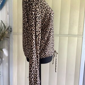 Chic Kenzo sweatshirt with bold leopard print. Features a stylish tie at the hem. Perfect for a trendy look.