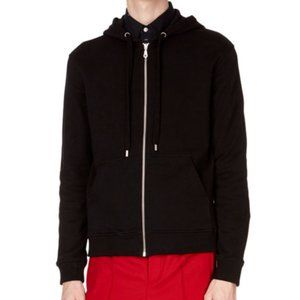 Kenzo zip hoodie produced of cotton fabric in a black colorway, the hooded top is constructed with a front zip fastening with cuffed sleeves and hem. Complete with the brands signature text print logo to the reverse of the hood.