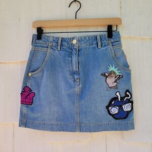 Kenzo Paris Denim Patch Mini Skirt Size 34/XS