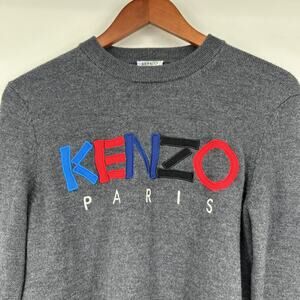 Kenzo Paris Wool Sweater Womens Size XS Gray Pullover Crewneck Logo