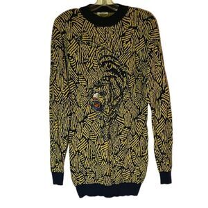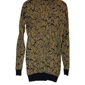 Kenzo Paris Yellow Black Geometric Print Beaded Tiger Sweater Tunic Dress RARE