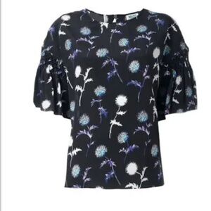 Kenzo Paris / dandelion print silk flutter sleeve Floral crop Top 44 xl