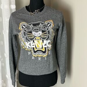 Kenzo Paris gray long sleeve sweatshirt with yellow trim tiger graphic sz small