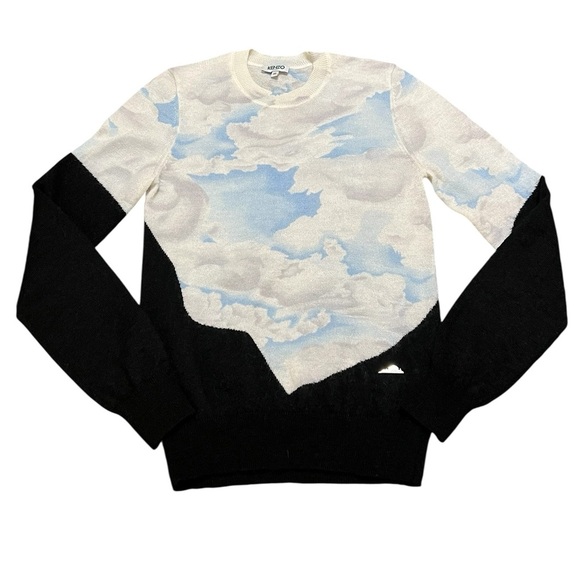 Kenzo Sky Blue and Black Cloud Crewneck Sweater mohair and wool blend