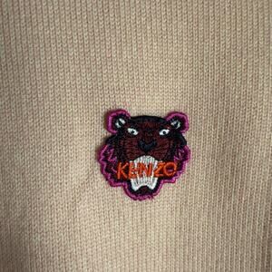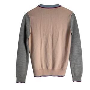 Kenzo Tiger Patch Pink Gray Colorblock Wool Cardigan Sweater Size Small