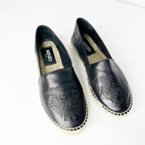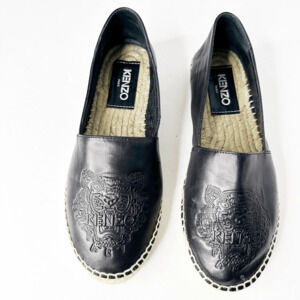 Kenzo Tiger Platform Leather Espadrille Black Noir jute Spain womens 38 8