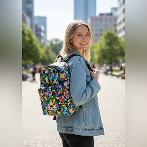 Introducing the limited edition Kenzo x Vans women’s Collection. This backpack features a beautiful floral pattern in multicolor, made with high-quality materials including polyester, nylon, stainless steel, and polyamide. It is designed for women’s and is a perfect accessory for any occasion.