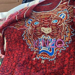 Kenzo / cable knit embroidered Claw Tiger Sweater in red blue small 4