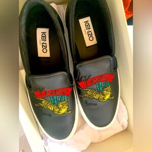 Kenzo skate shoes logo slip ons $350 6 embroidered designer leather black fall