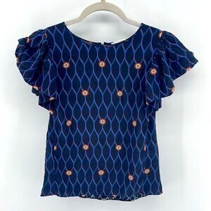 Kenzo x H&M 100% silk printed ruffle sleeve blouse top sz 4